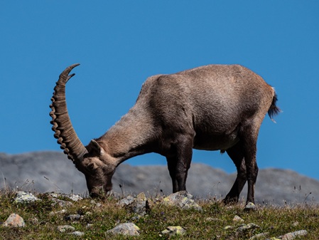 Ein Alpensteinbock hat im Durchschnitt eine Kopfrumpflänge von 150 cm und eine Schulterhöhe von 90 cm. Böcke wiegen über 100 kg. Der Bock verfügt über ein imposantes, gebogenes Gehörn (bis zu 1 m Länge), während die Geiss nur kurze, kaum gebogene Hörner hat. Die Böcke besitzen einen Ziegenbart. Böcke haben im Sommer ein dunkelbraunes Fell; das Fell der Weibchen ist mehr rötlich oder goldbraun. Im Winter wird das Fell beider Geschlechter gräulich.